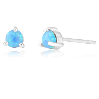 Sterling Silver Created Opal Round Studs