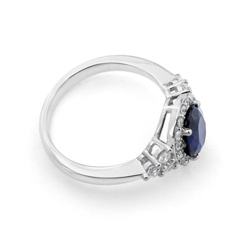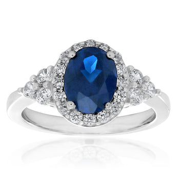 Sterling Silver Created Sapphire and White Zirconia Oval Ring