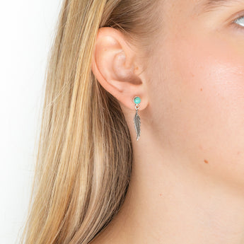 Sterling Silver Created Turquoise Dome & Feather Stud Earrings