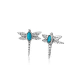 Sterling Silver Created Turquoise Dragonfly Stud Earrings