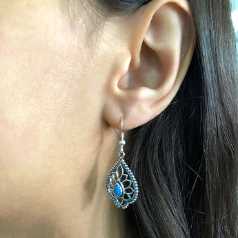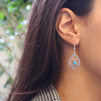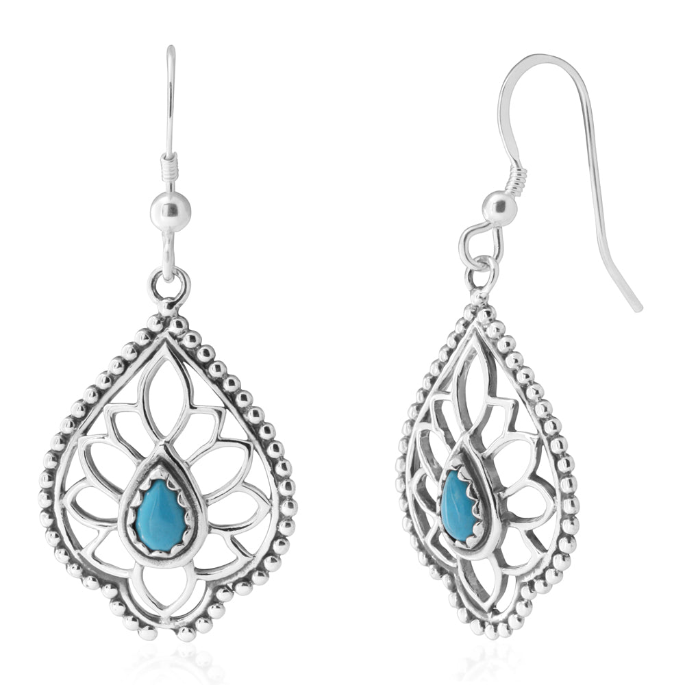 Sterling Silver Created Turquoise Fancy Drop Earrings