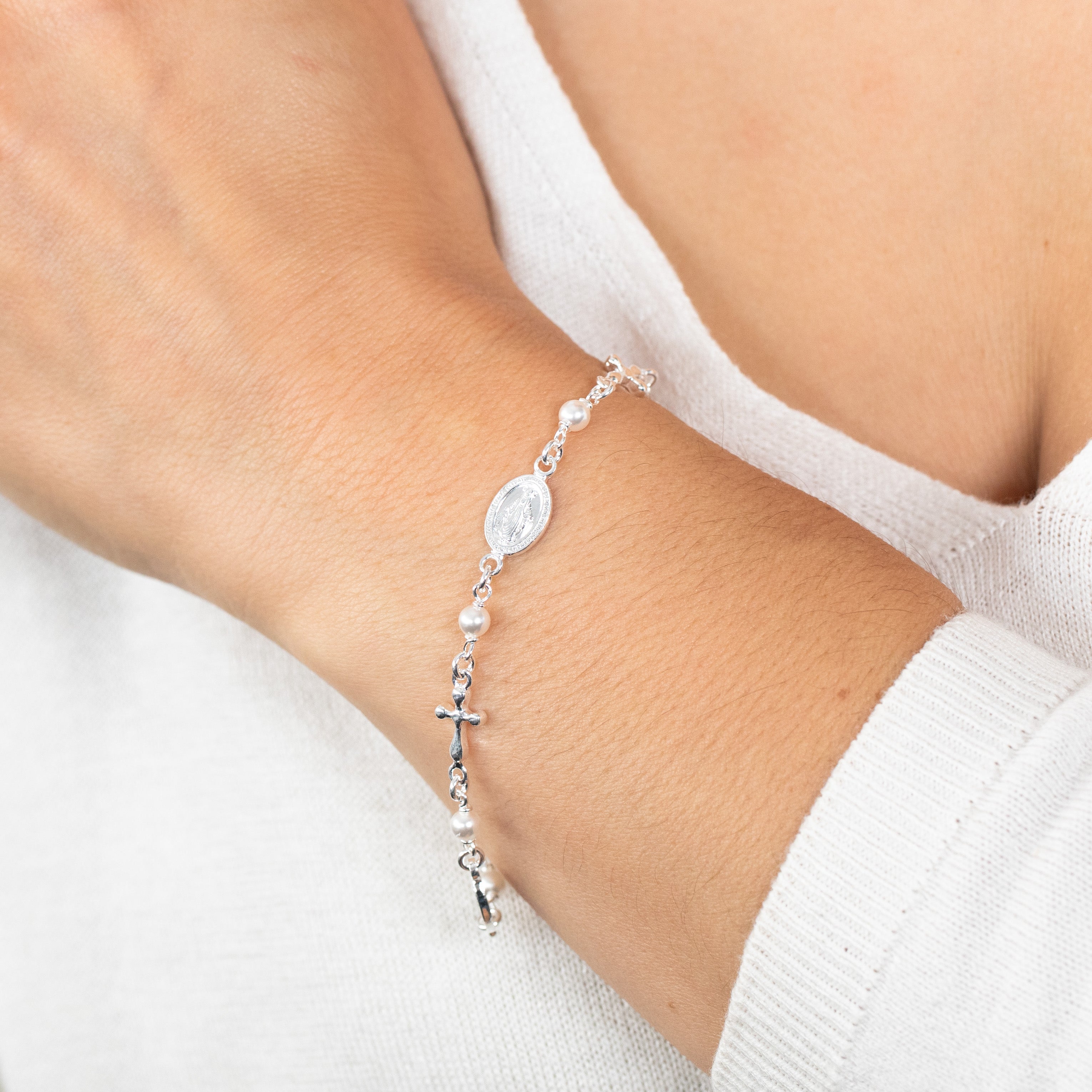 Sterling Silver Cross And Medallion 16+3cm Bracelet