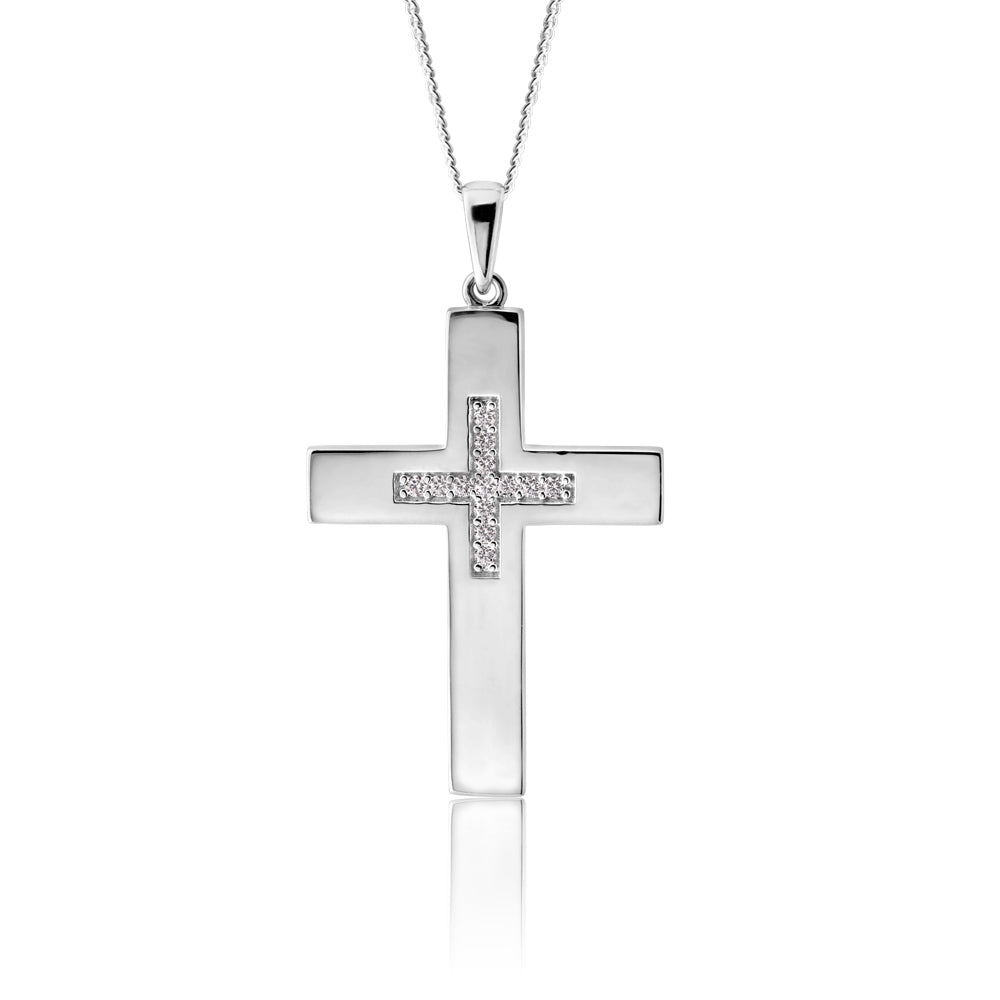 Sterling Silver Cross Pendant featuring Cubic Zirconia Cross Centre
