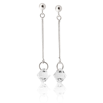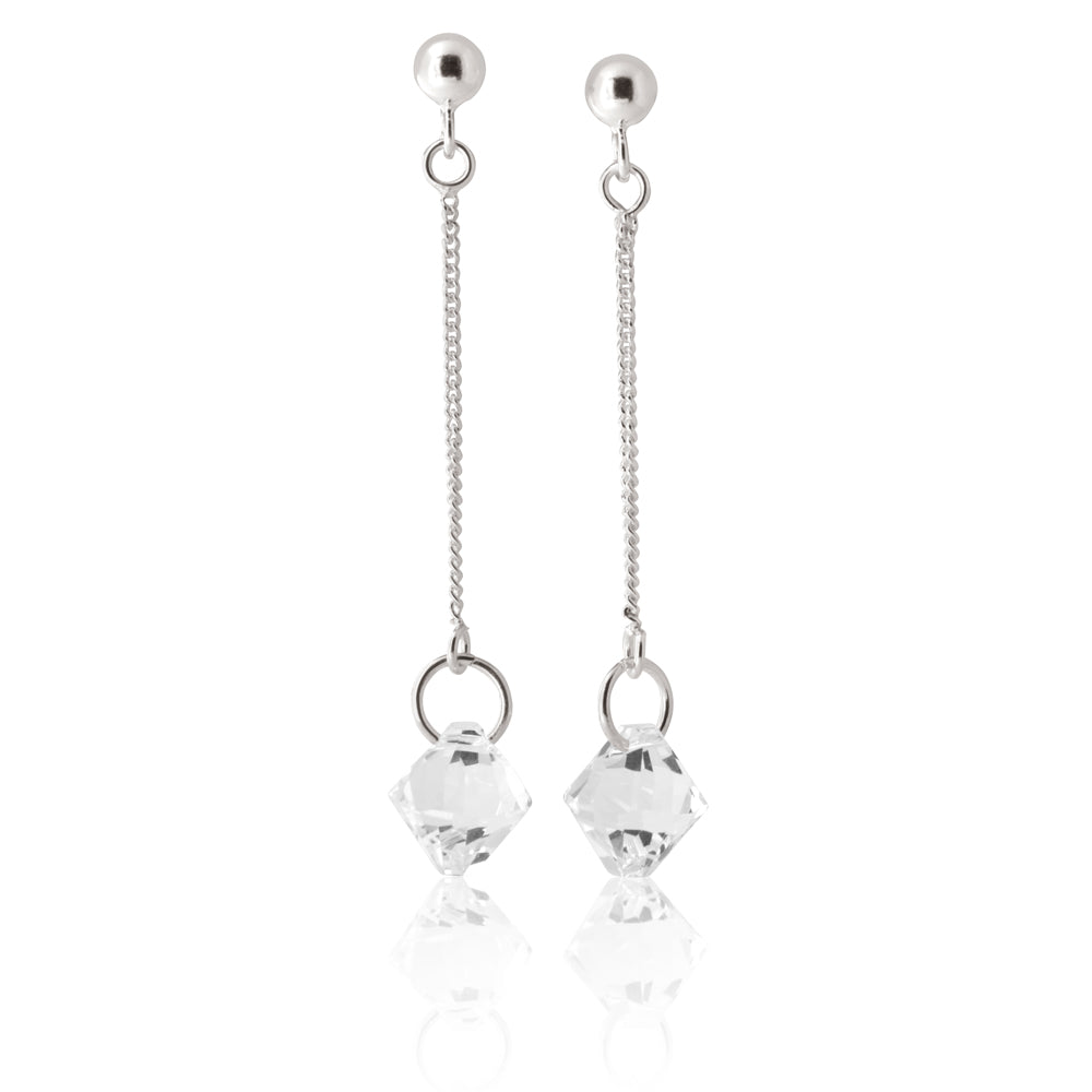 Sterling Silver Crystal White Bead Drop Earrings