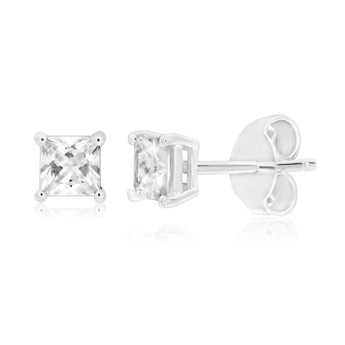 Sterling Silver Cubic Zirconia 4mm Princess Cut Stud Earrings