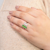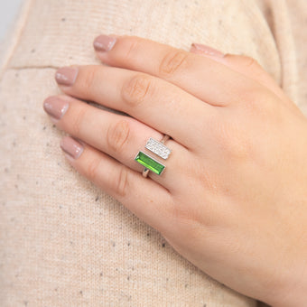 Sterling Silver Cubic Zirconia And Green Enamel Open Ring