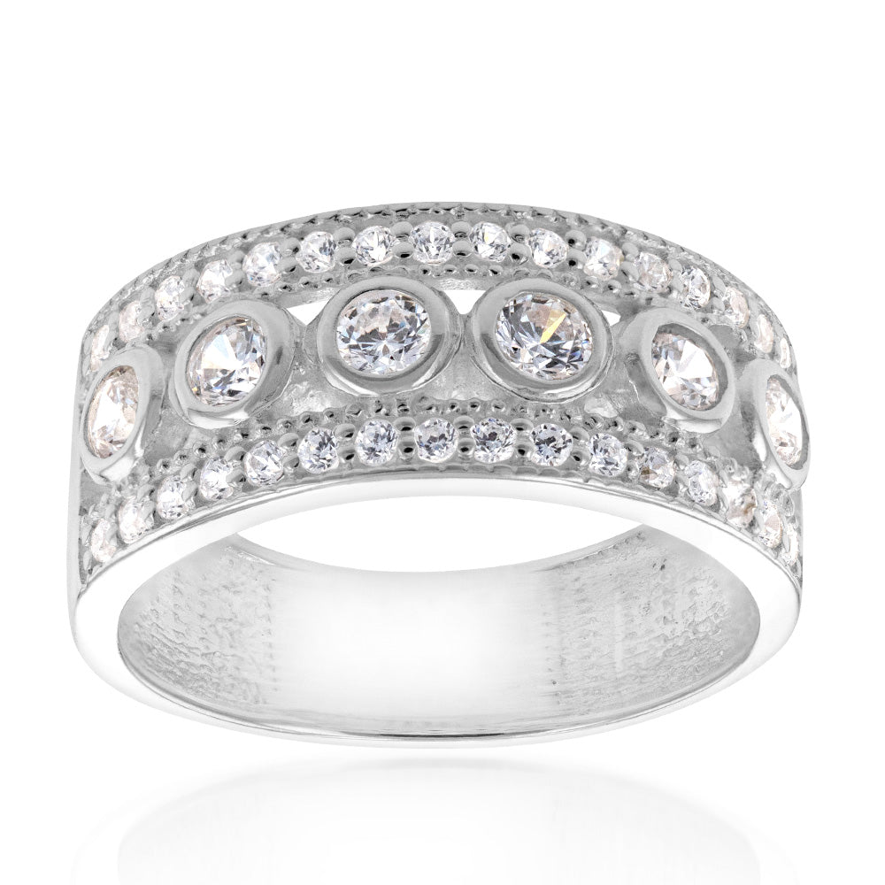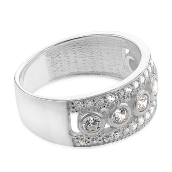 Sterling Silver Cubic Zirconia Broad Fancy Ring