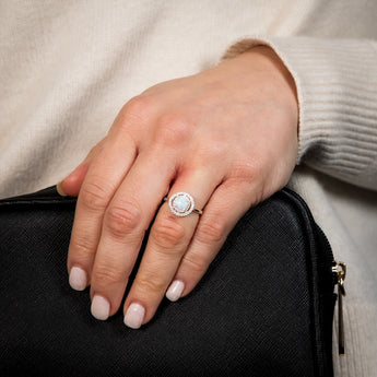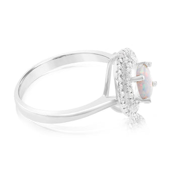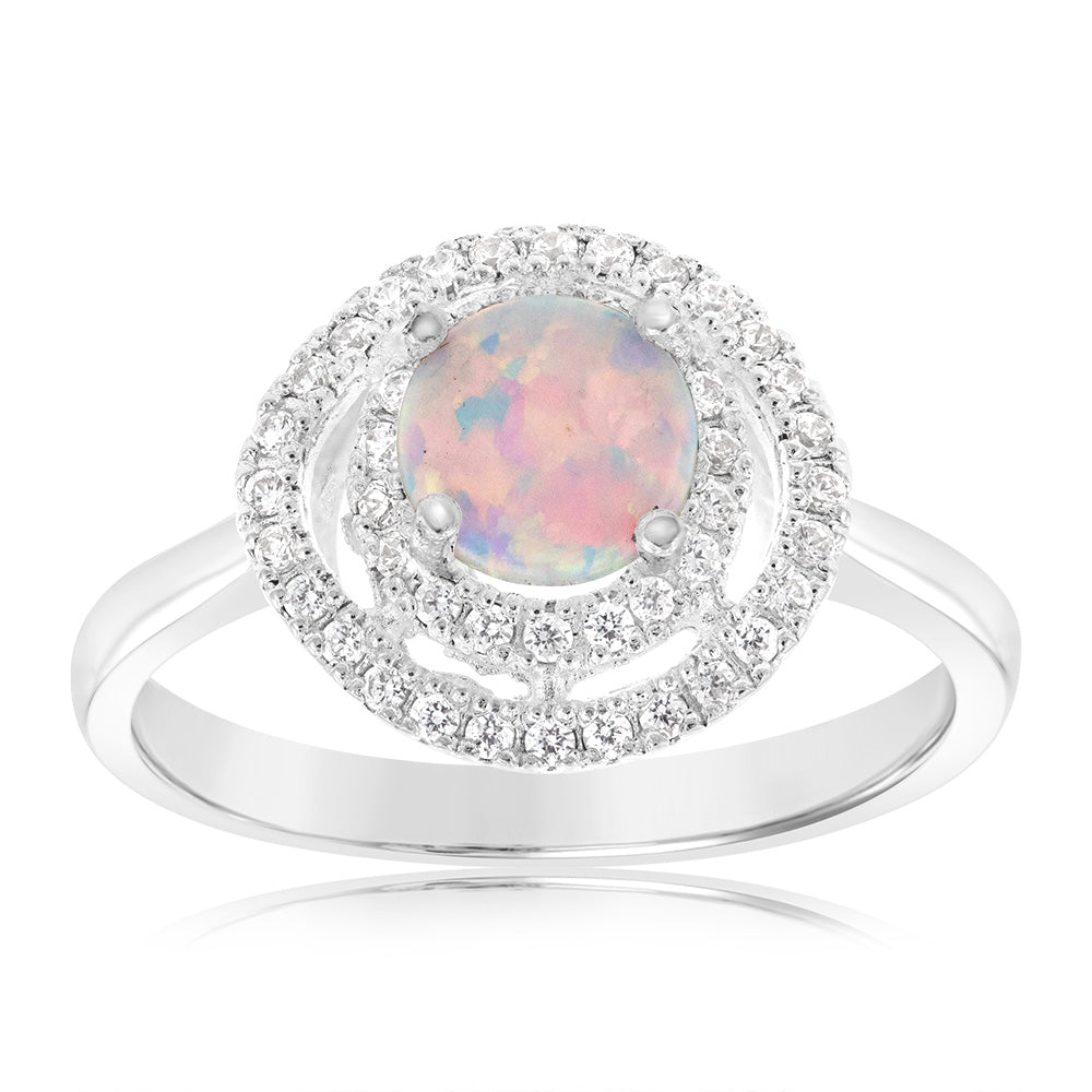 Sterling Silver Cubic Zirconia Created Opal Round Ring