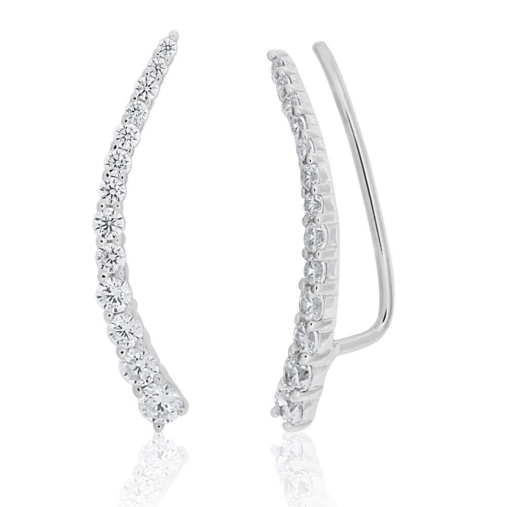 Sterling Silver Cubic Zirconia Curved Ear Climber Earrings