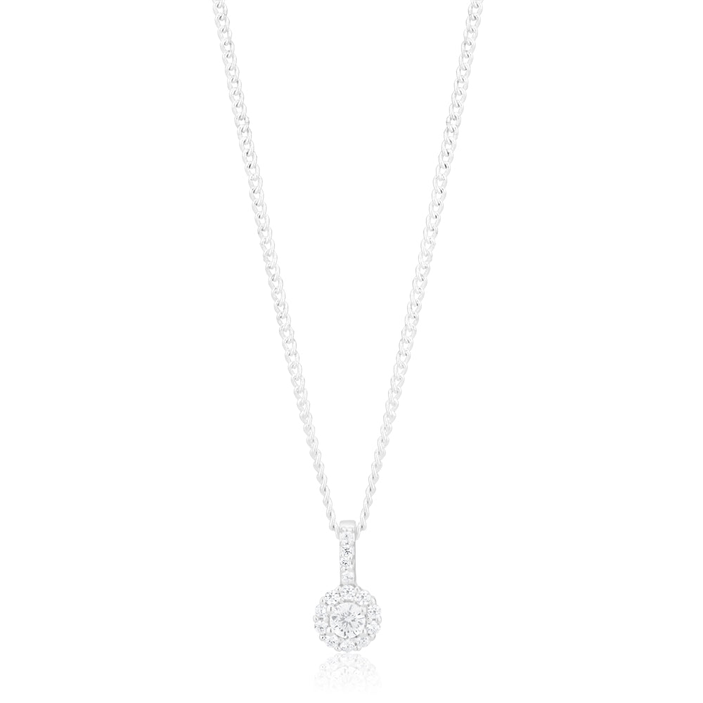 Sterling Silver Cubic Zirconia Cut Halo Pendant