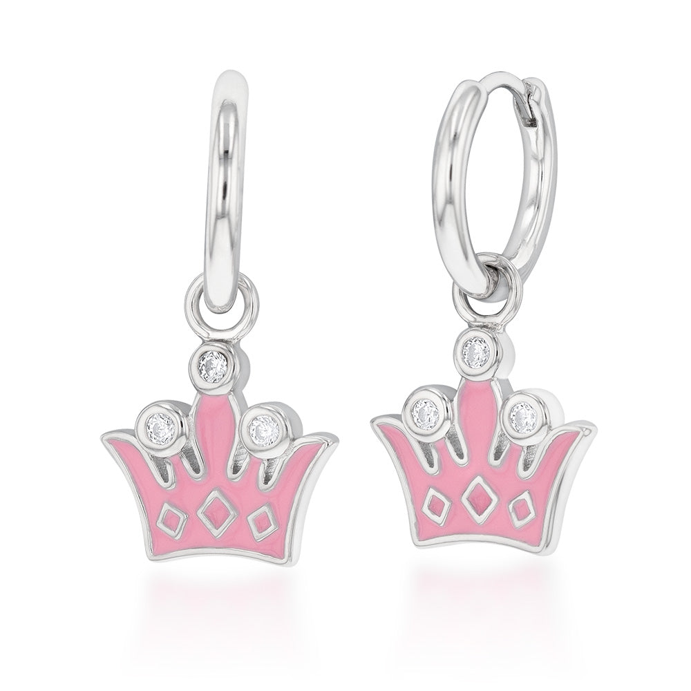 Sterling Silver Cubic Zirconia Enamel Coated Crown Hoop Earrings