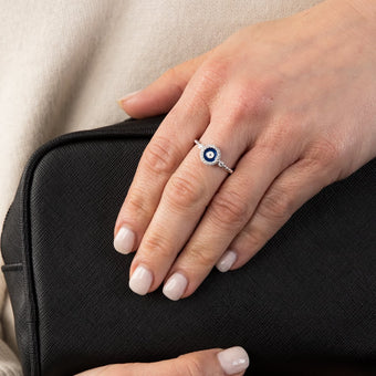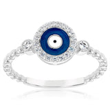 Sterling Silver Cubic Zirconia Evil Eye Fancy Ring