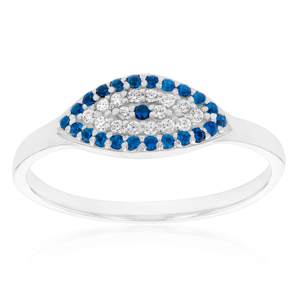 Sterling Silver Cubic Zirconia Evil Eye Ring