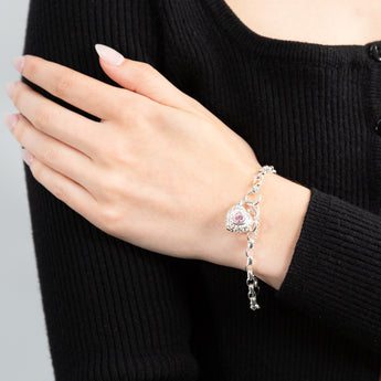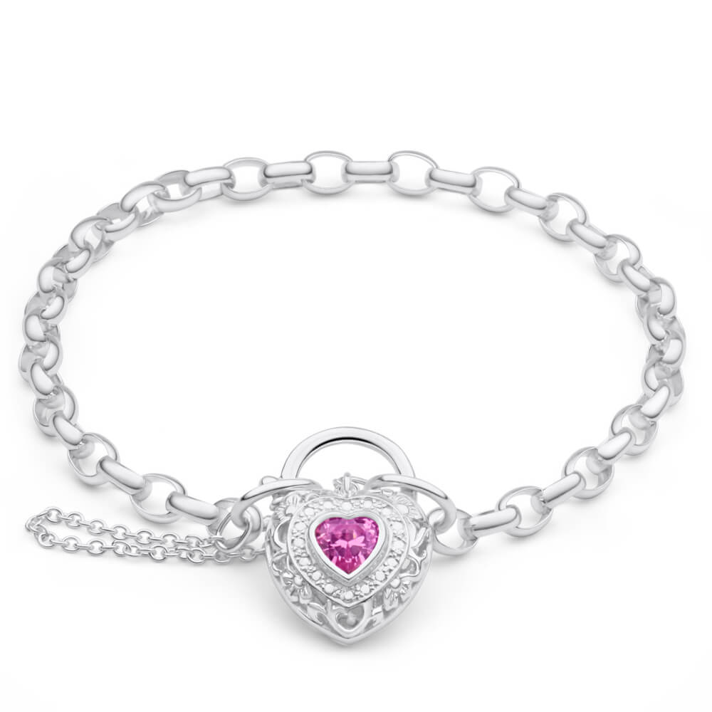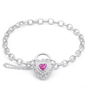 Sterling Silver Cubic Zirconia Filigree Heart 19cm Bracelet