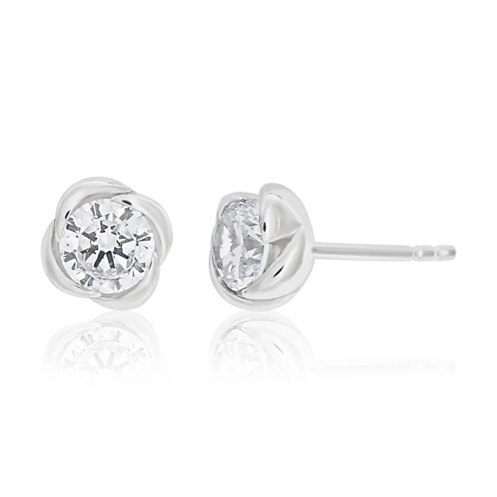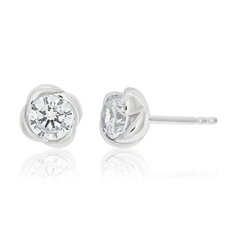 Sterling Silver Cubic Zirconia Flower Stud Earrings