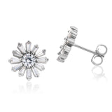 Sterling Silver Cubic Zirconia Flower Stud Earrings