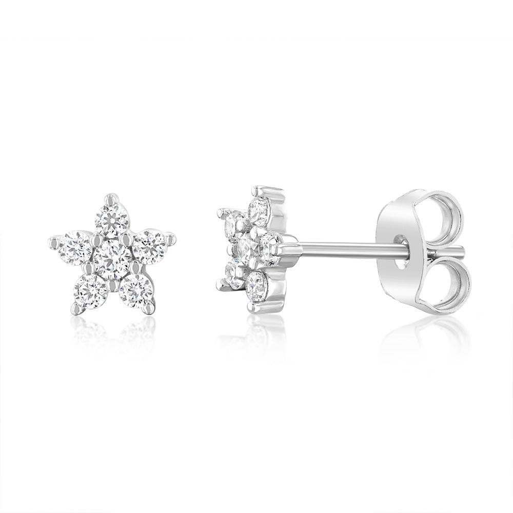 Sterling Silver Cubic Zirconia Flower Stud Earrings