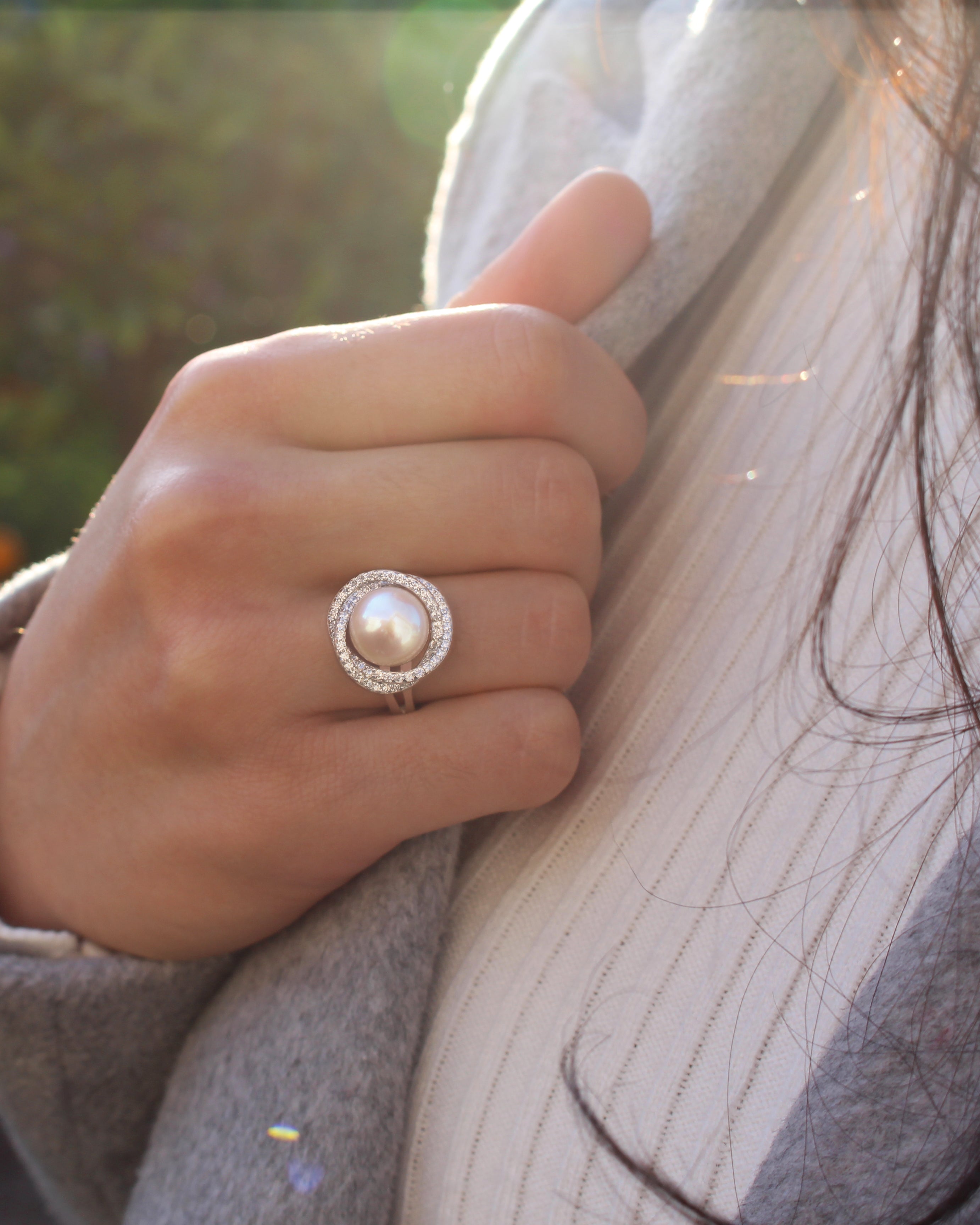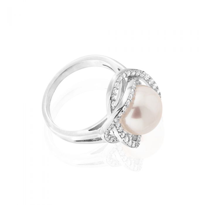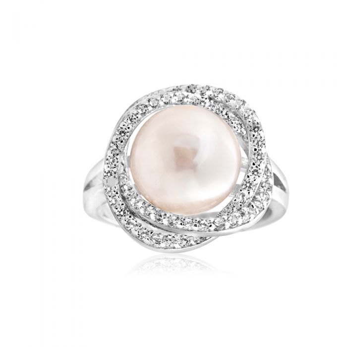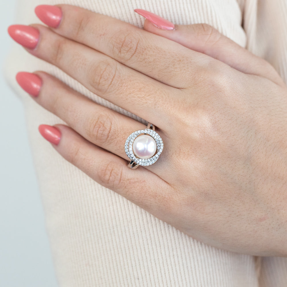 Sterling Silver Cubic Zirconia Freshwater Pearl Ring