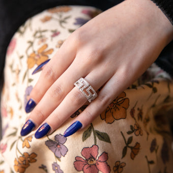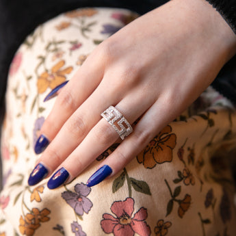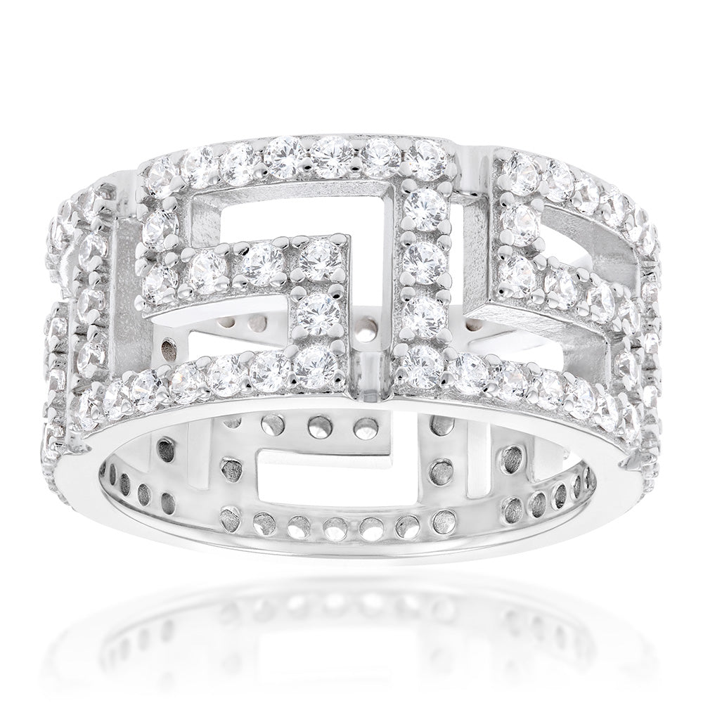 Sterling Silver Cubic Zirconia Greek Key Ring