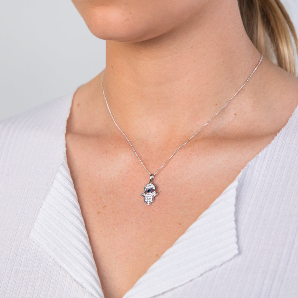 Sterling Silver Cubic Zirconia Hamsa Evil Eye Pendant