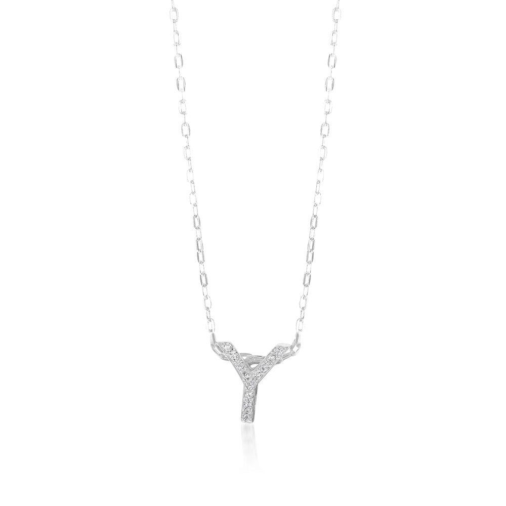 Sterling Silver Cubic Zirconia Inital "Y" Pendant On 39+3cm Chain