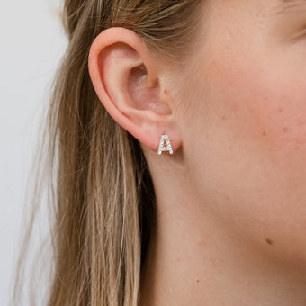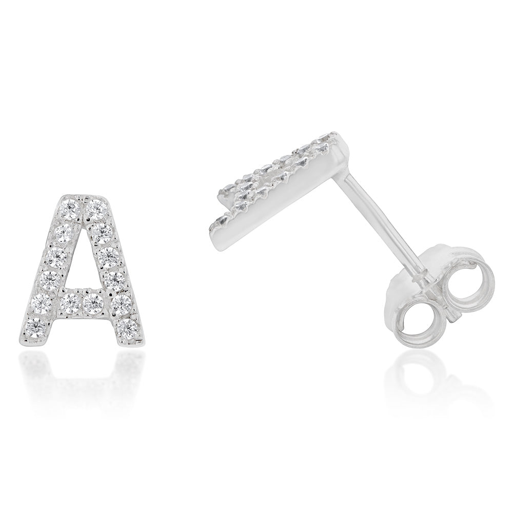 Sterling Silver Cubic Zirconia Initial "A" Stud Earrings