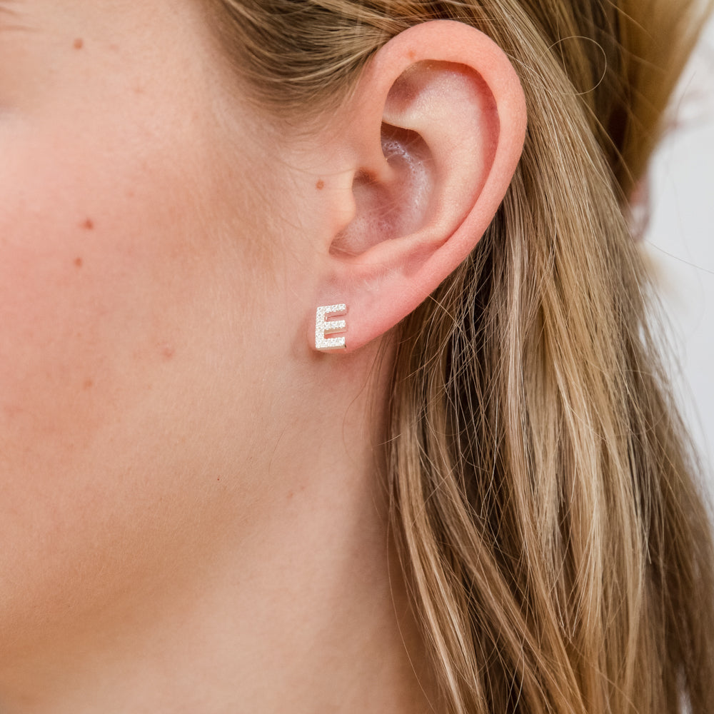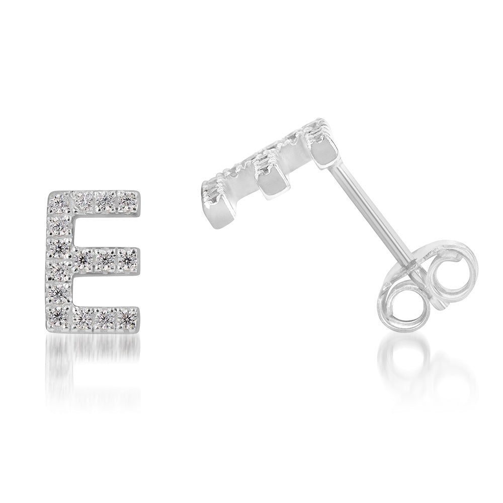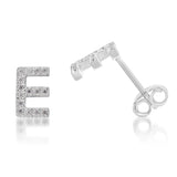 Sterling Silver Cubic Zirconia Initial "E" Stud Earrings