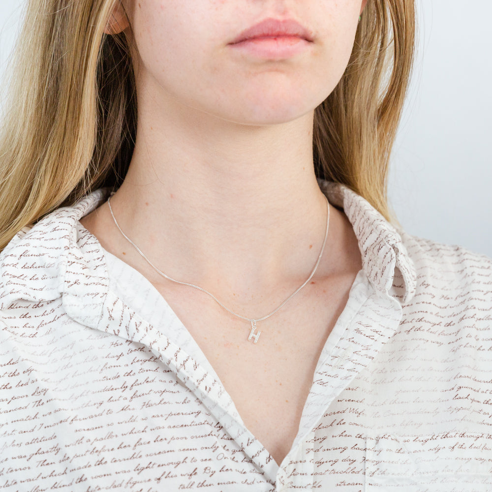 Sterling Silver Cubic Zirconia Initial "H" Pendant