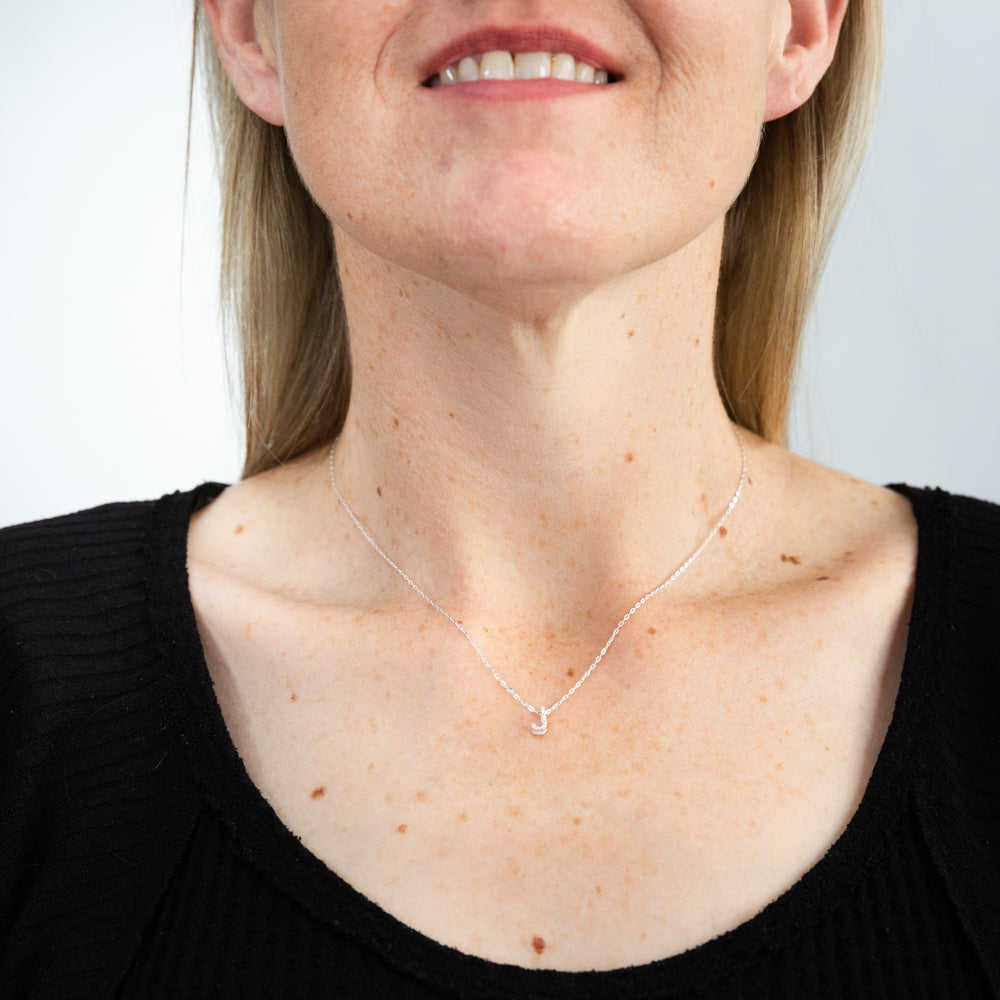 Sterling Silver Cubic Zirconia Initial "J" Pendant On 39+3cm Chain