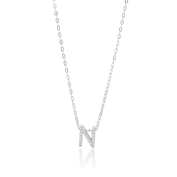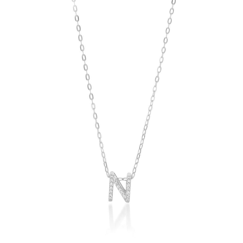 Sterling Silver Cubic Zirconia Initial "N" Pendant On 39+3cm Chain