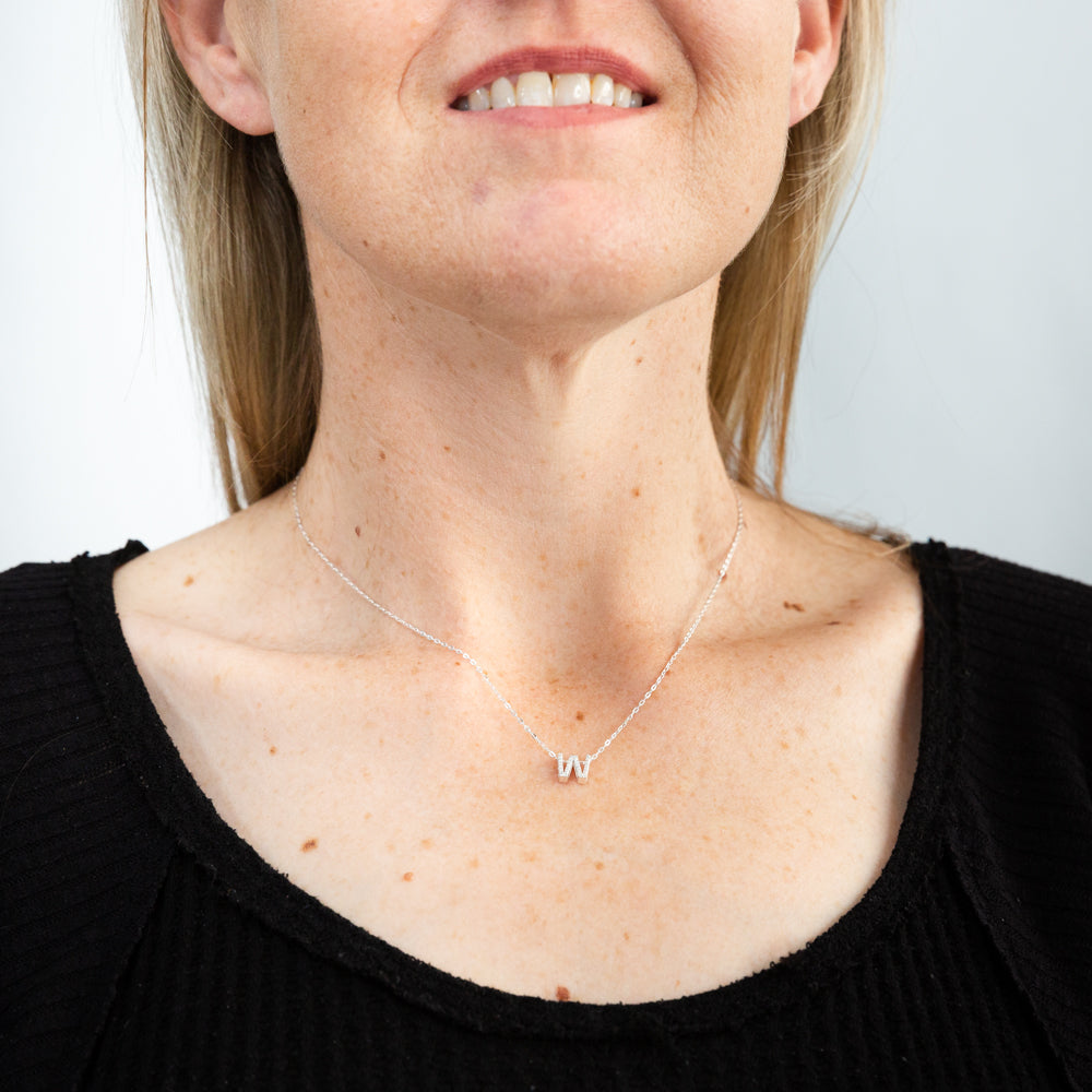 Sterling Silver Cubic Zirconia Initial "W" Pendant On 39+3cm Chain