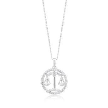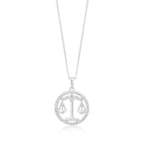 Sterling Silver Cubic Zirconia Libra Horoscope Round 19mm x 26mm Pendant