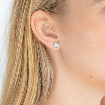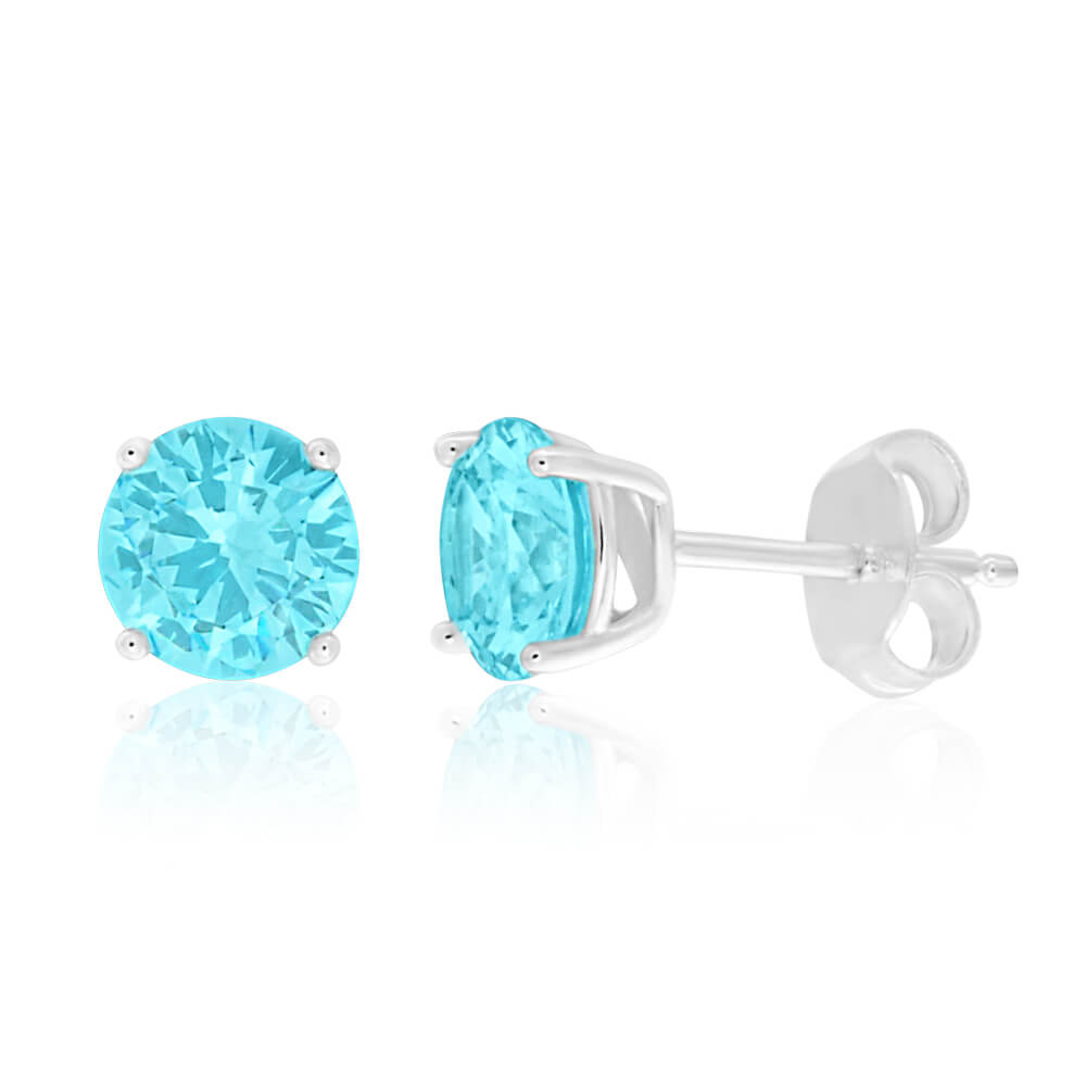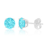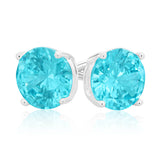 Sterling Silver Cubic Zirconia Light Aqua Stud Earrings