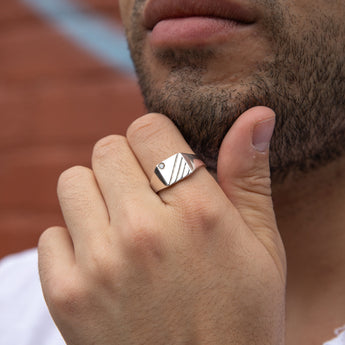 Introducing the Sterling Silver Cubic Zirconia Lines Ring—a stylish addition to elevate any outfit. Crafted for men, this signet ring features a sparkling cubic zirconia, adding a touch of sophistication and flair to your style.