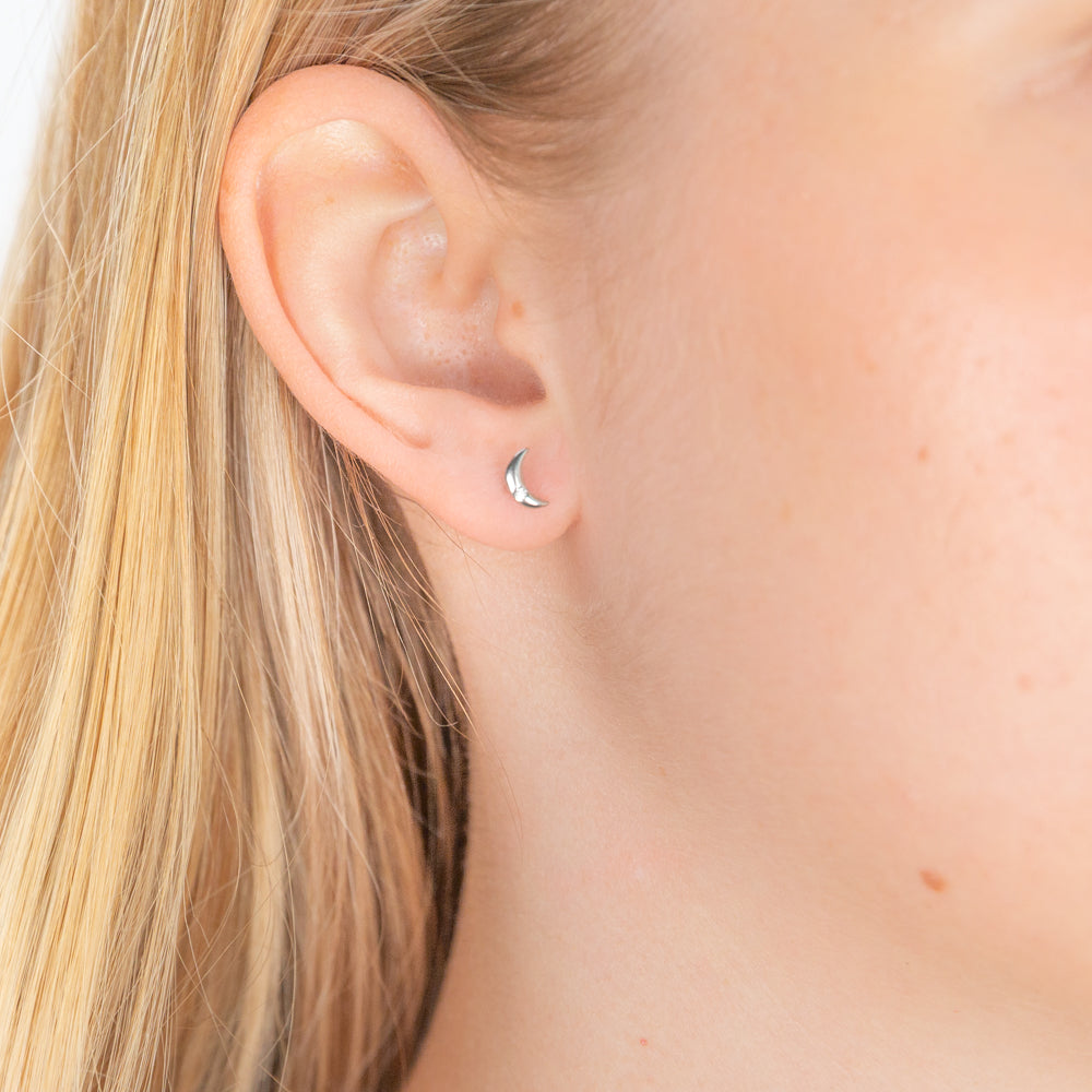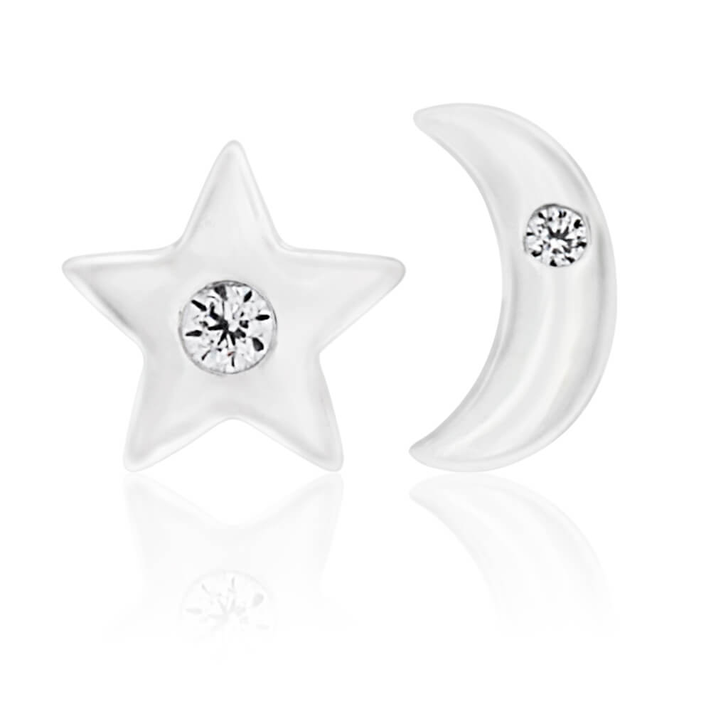 Sterling Silver Cubic Zirconia Moon and Star Stud Earrings
