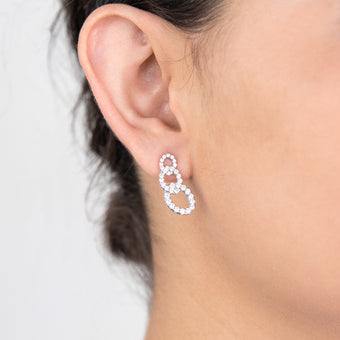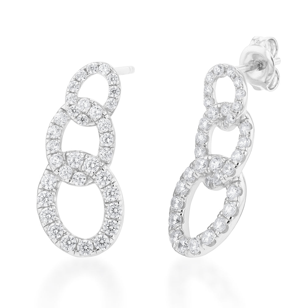 Sterling Silver Cubic Zirconia On Connected Links Rhodium Plated Stud Earrings