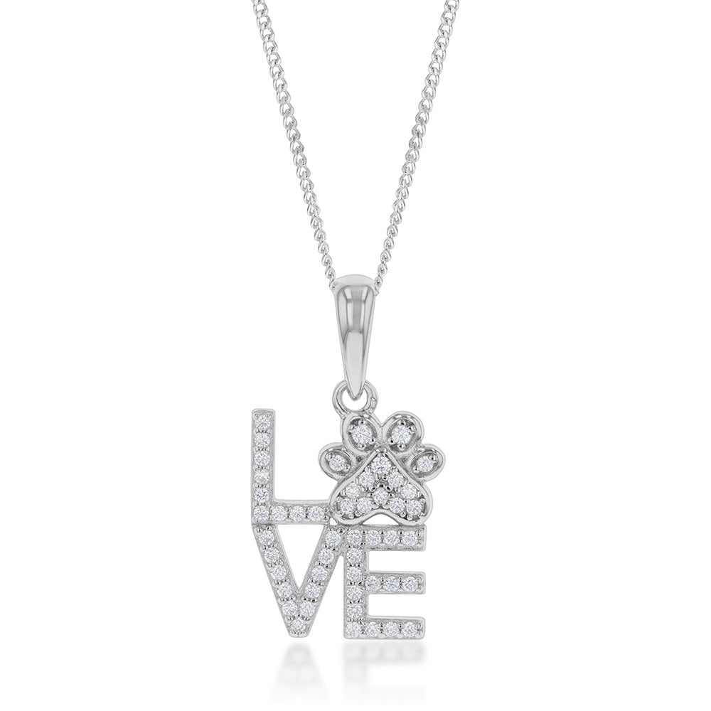 Sterling Silver Cubic Zirconia On Fancy Love Pendant