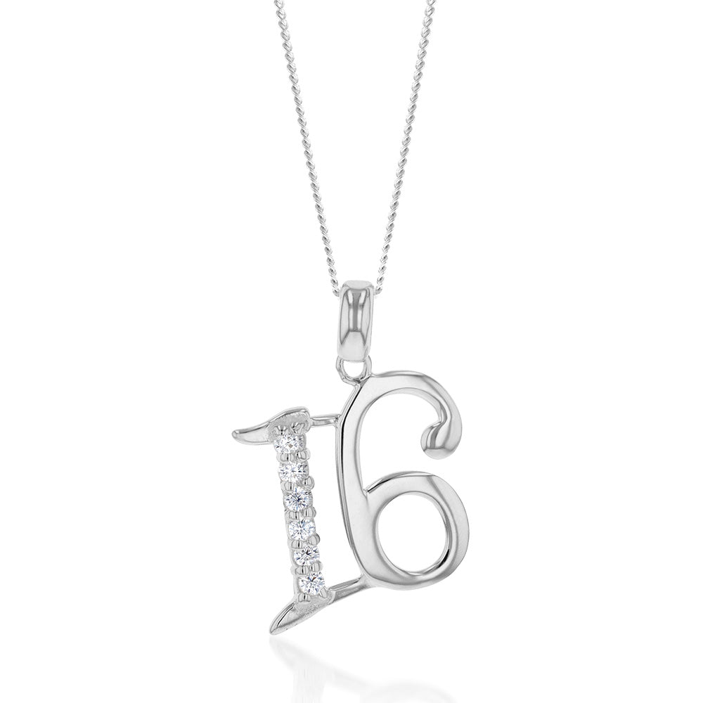 Sterling Silver Cubic Zirconia On Number "16" Pendant