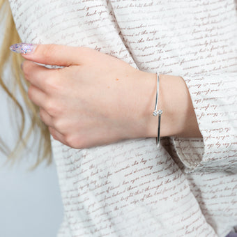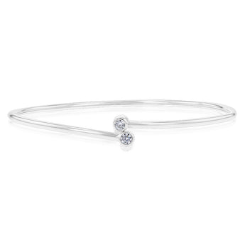 Sterling Silver Cubic Zirconia On Plain Adjustable Bangle