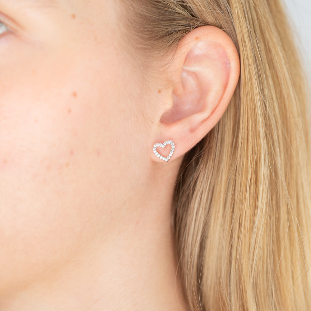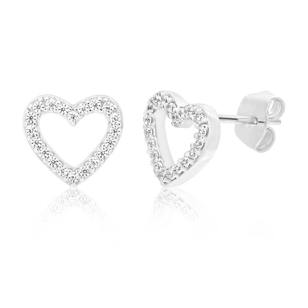 Sterling Silver Cubic Zirconia Open Heart Stud Earrings