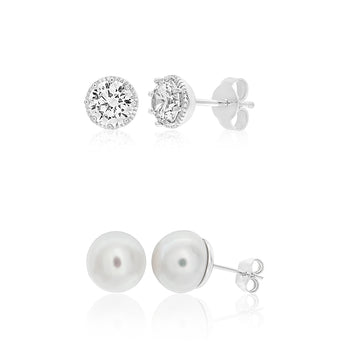 Sterling Silver Cubic Zirconia + Pearl Classic Jewellery Set