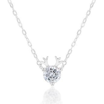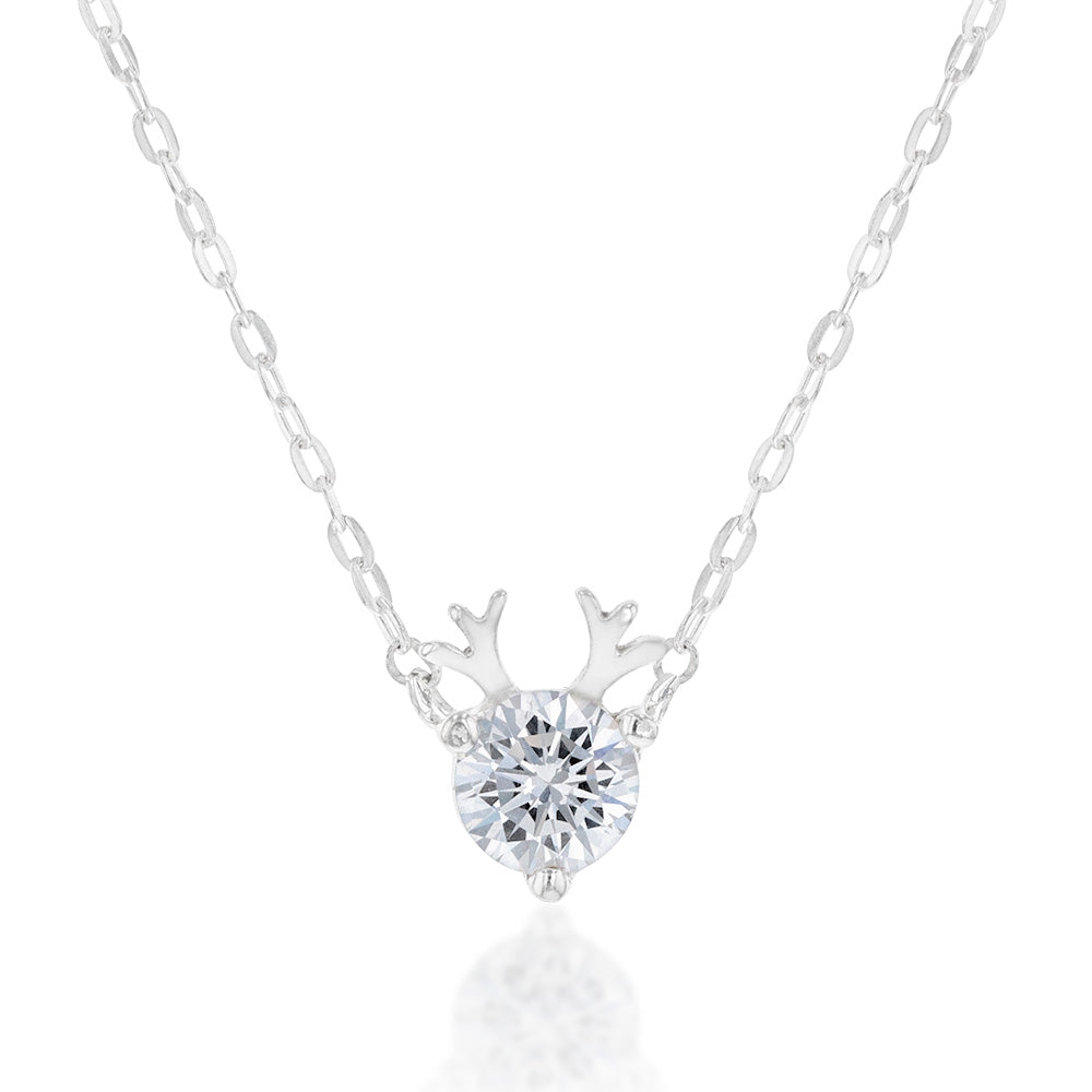 Sterling Silver Cubic Zirconia Reindeer Pendant On 45cm Chain