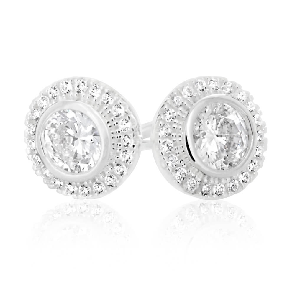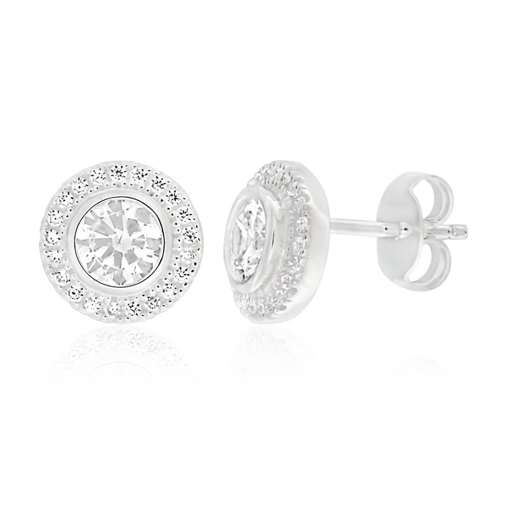 Sterling Silver Cubic Zirconia Round Halo Stud Earrings