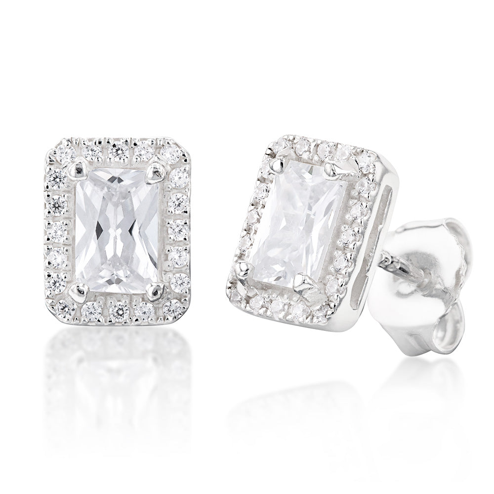 Sterling Silver Cubic Zirconia Square Halo Stud Earrings