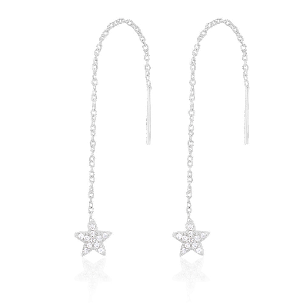 Sterling Silver Cubic Zirconia Star Threader Earrings