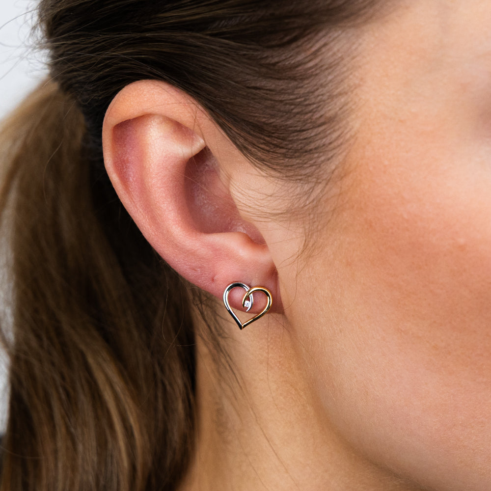 Sterling Silver Cubic Zirconia Two Tone Fancy Heart Pendant