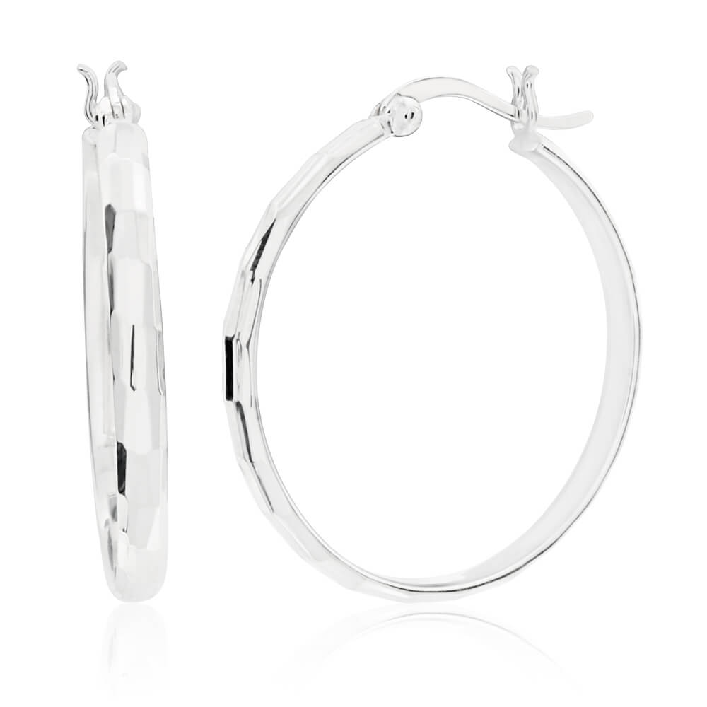 Sterling Silver Cut Hoop Earrings