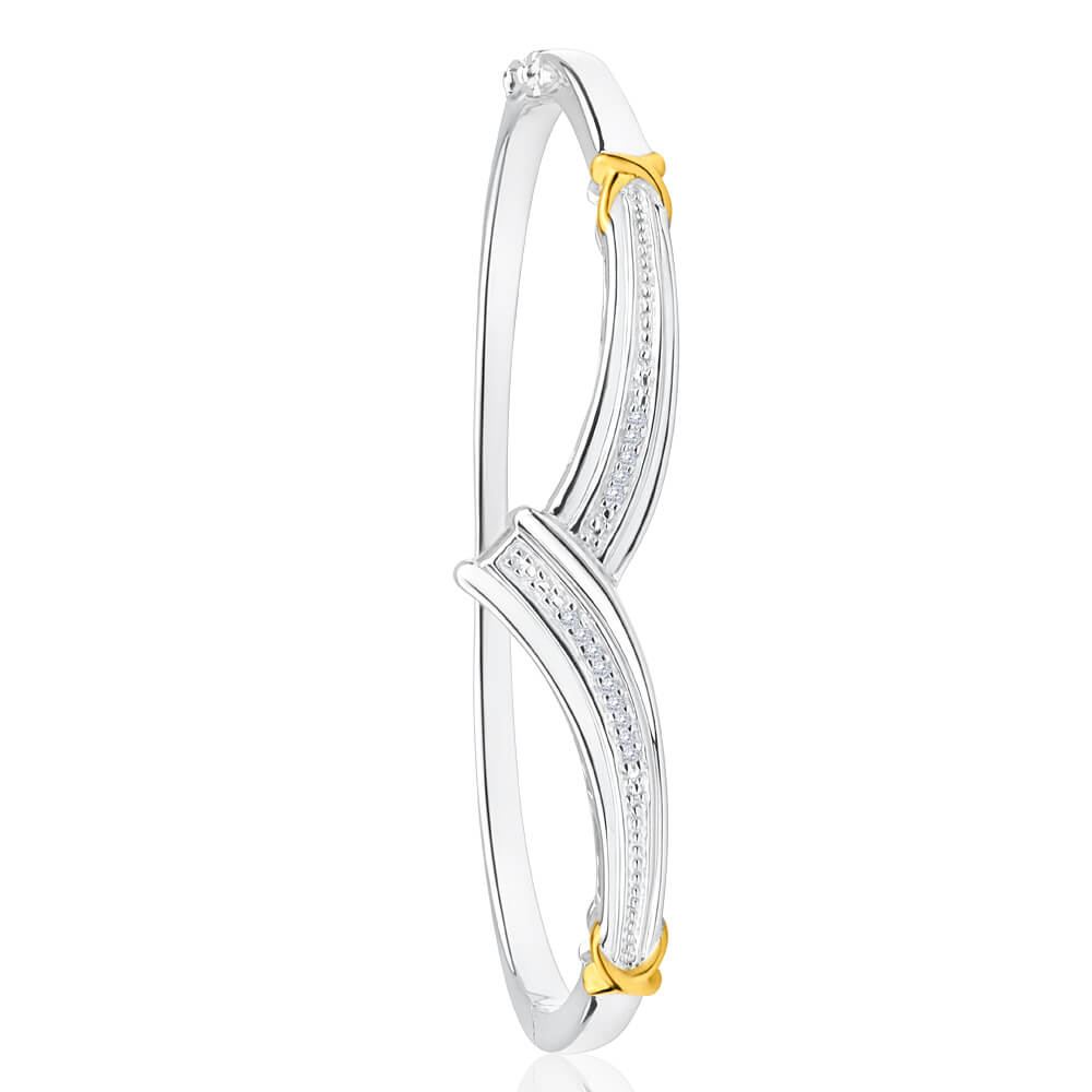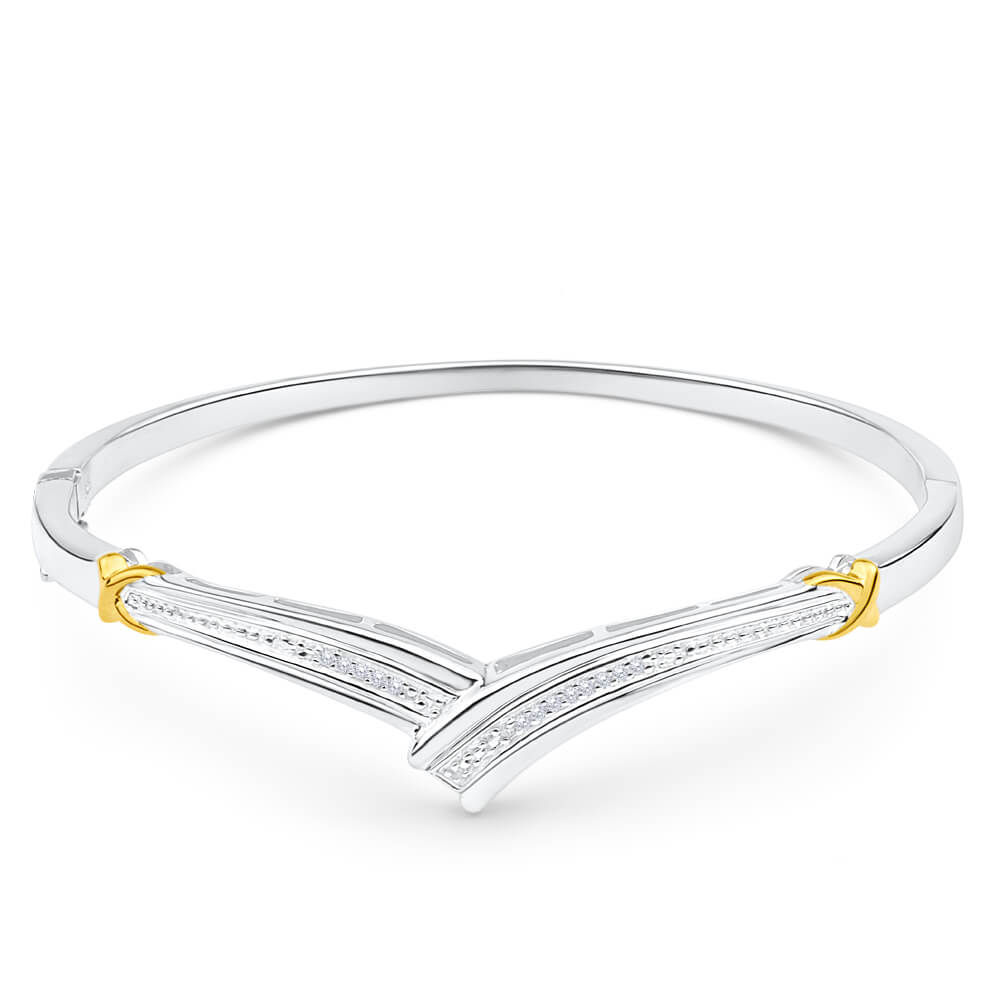 Sterling Silver Diamond Bead Bangle