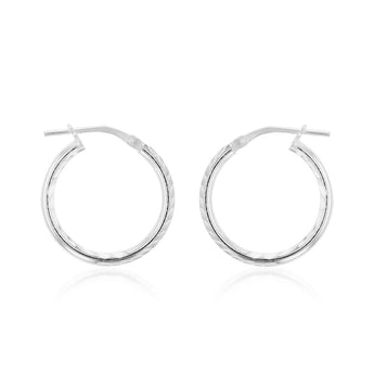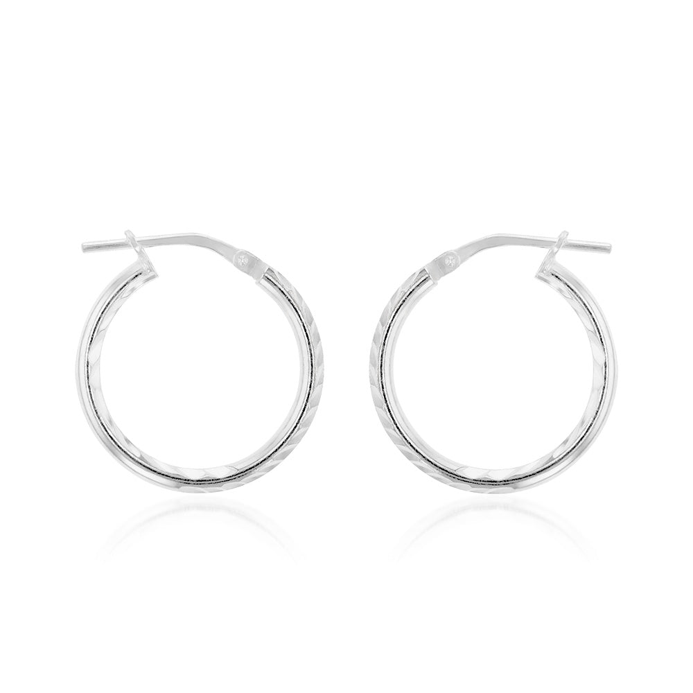 Sterling Silver Diamond Cut 15mm Hoop Earrings