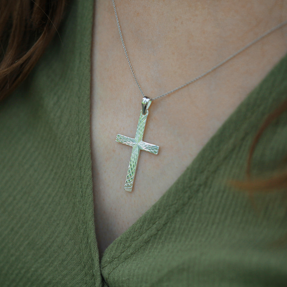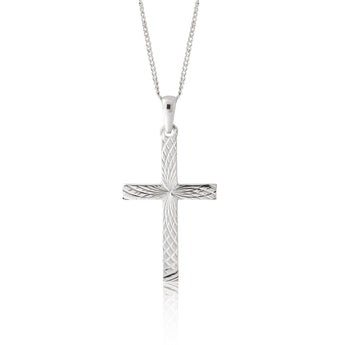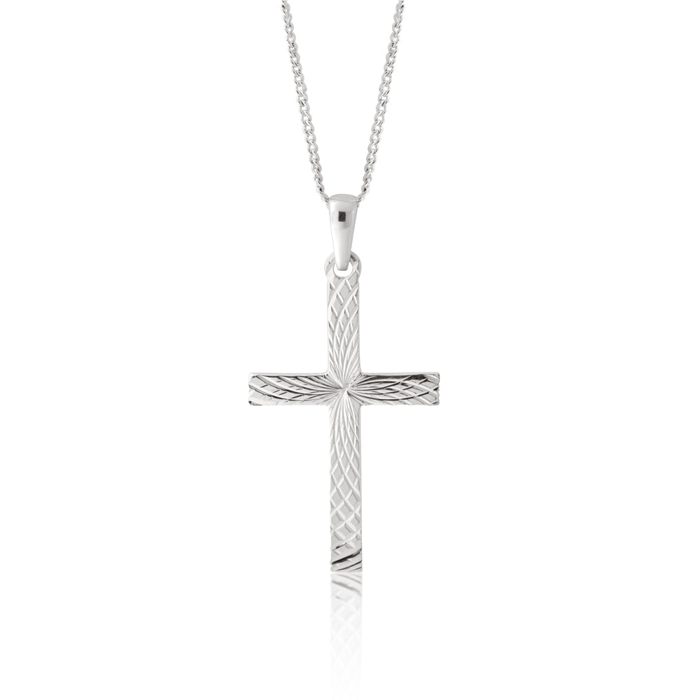 Sterling Silver Diamond Cut 35mm Cross Pendant